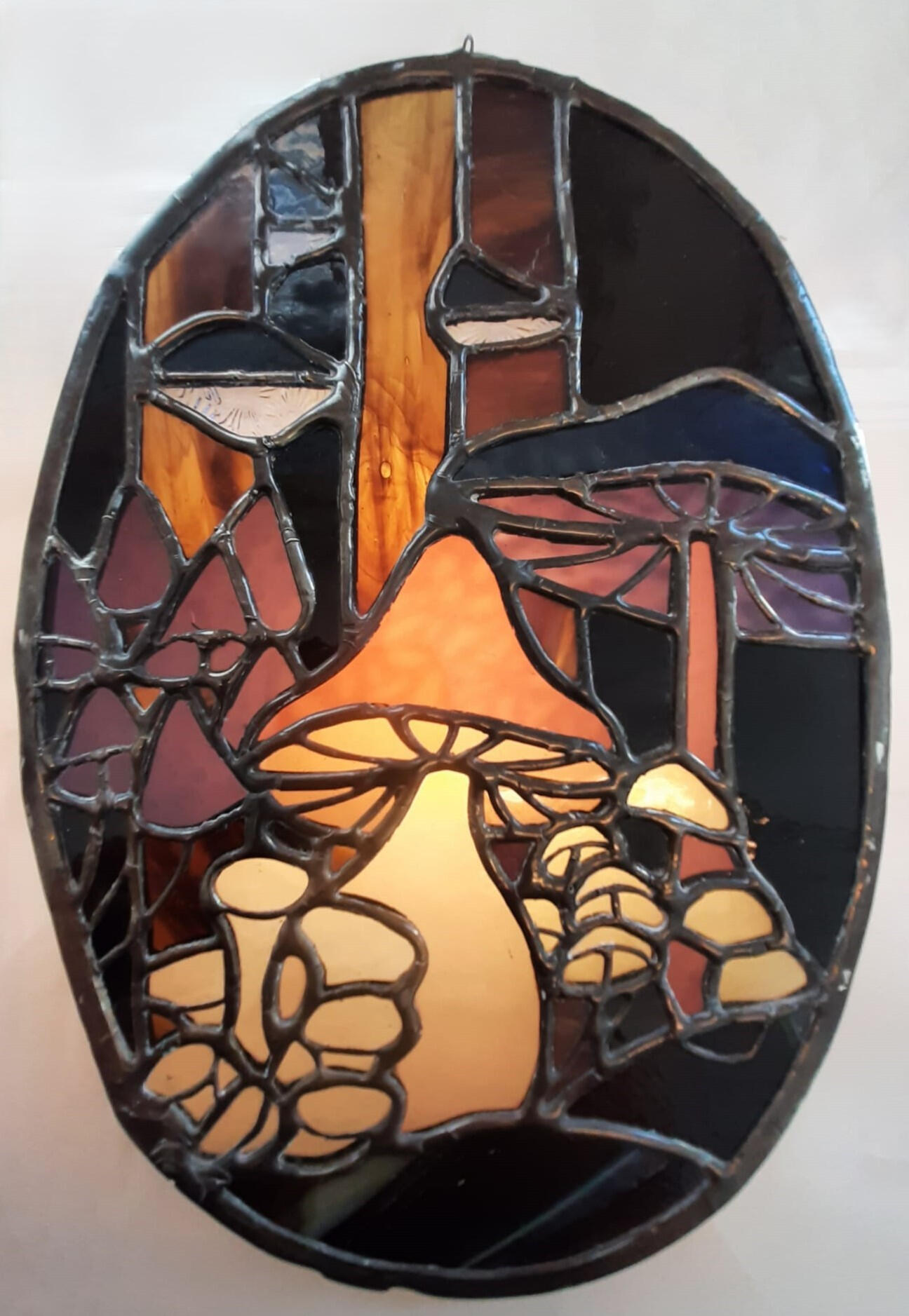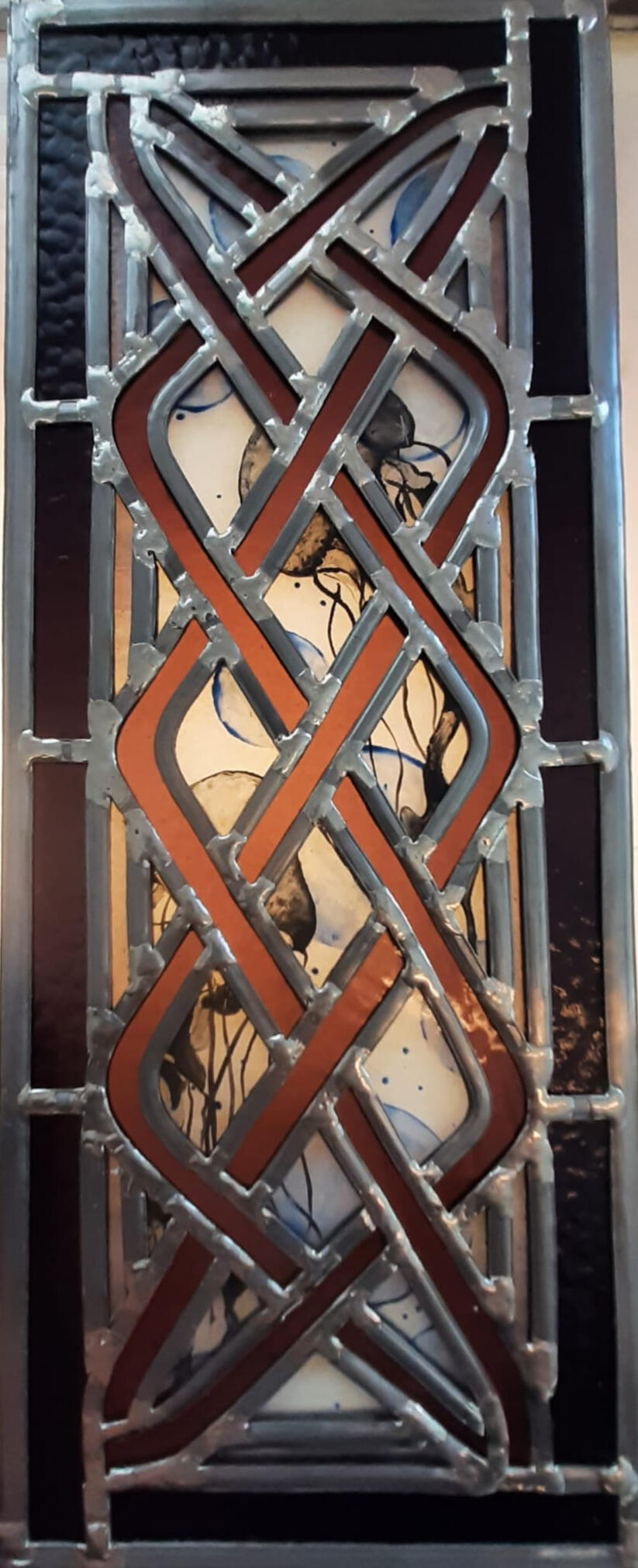 Je propose une série de petites pièces, souvent une pièce de verre coloré, cerclée de plomb et pouvant être suspendue ou plantée.